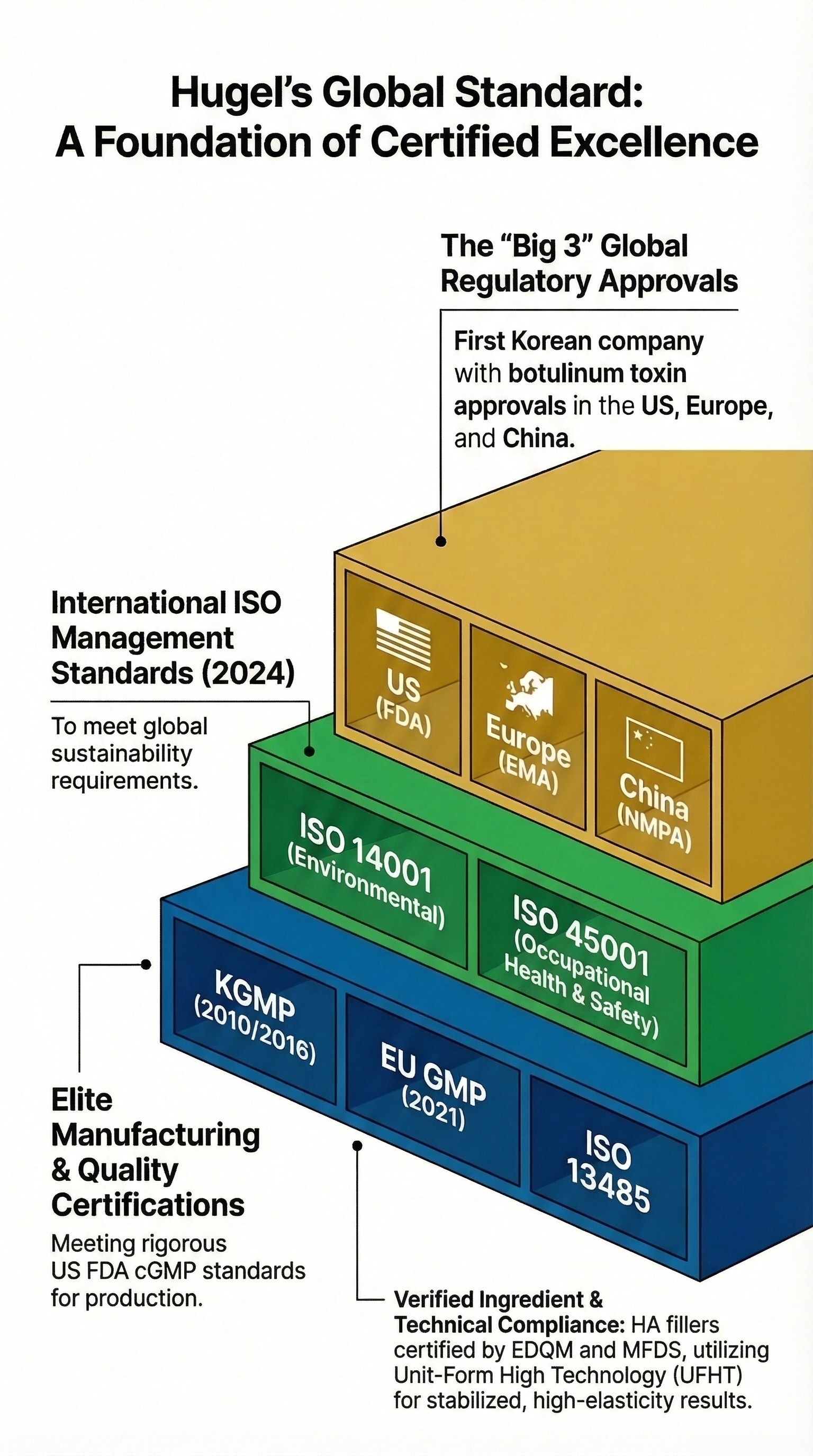 Corporate Ascendancy & Quality Standards: Hugel has established Botulax as the absolute market leader in South Korea, maintaining the #1 market share for nine consecutive years since 2016. It is the first and only Korean toxin to penetrate the world's three largest markets: the US, China, and Europe.